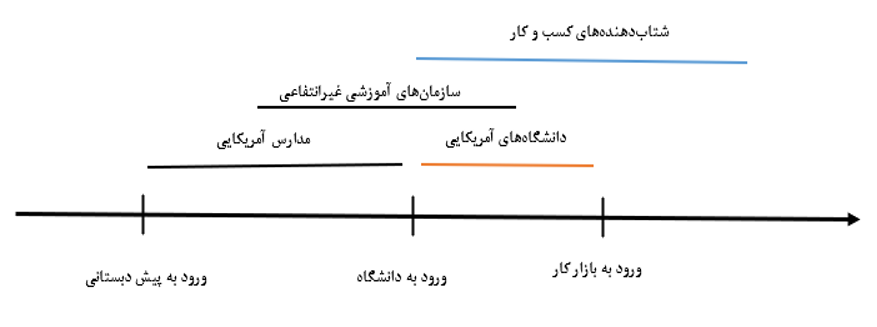 در دیپلماسی آموزشی آمریکا، یک عراقی از سن ۴ یا ۵ سالگی در مدارس، دانشگاهها، سازمانهای آموزشی غیرانتفاعی و شتابدهندههای کسب و کار تحت تعلیم قرار میگیرد. خروجی این دستگاه آموزشی، افرادی است که کاملا در چارچوب فکری غربی میاندیشند.
