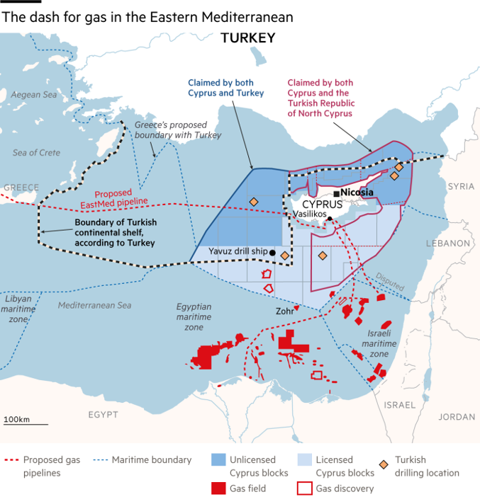 منابع گازی شرق مدیترانه و مرزهای مورد مناقشه