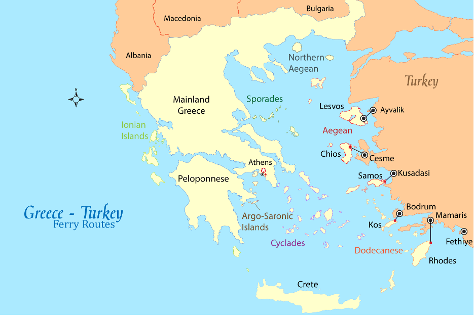 نقشه ترکیه و یونان - نزدیکی جزایر متعلق به یونان به خاک ترکیه قابل توجه است!